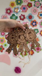 また園からは、オリジナルデザインのレーザー刻印メダルを記念品として贈りました。